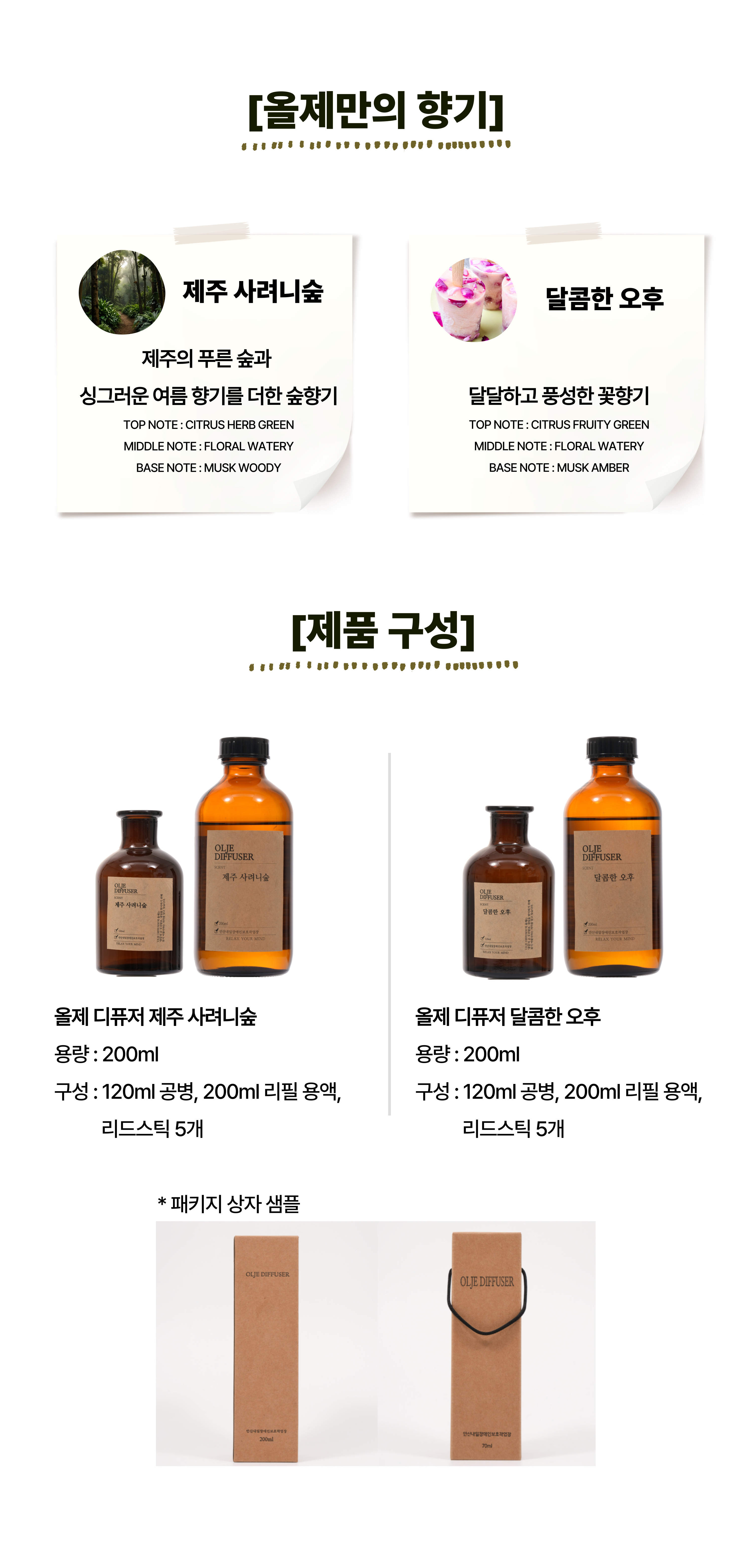 | 품목 및 제품명 | 품목 : 방향제 / 제품명: 올제 디퓨저 제주 사려니숲 |