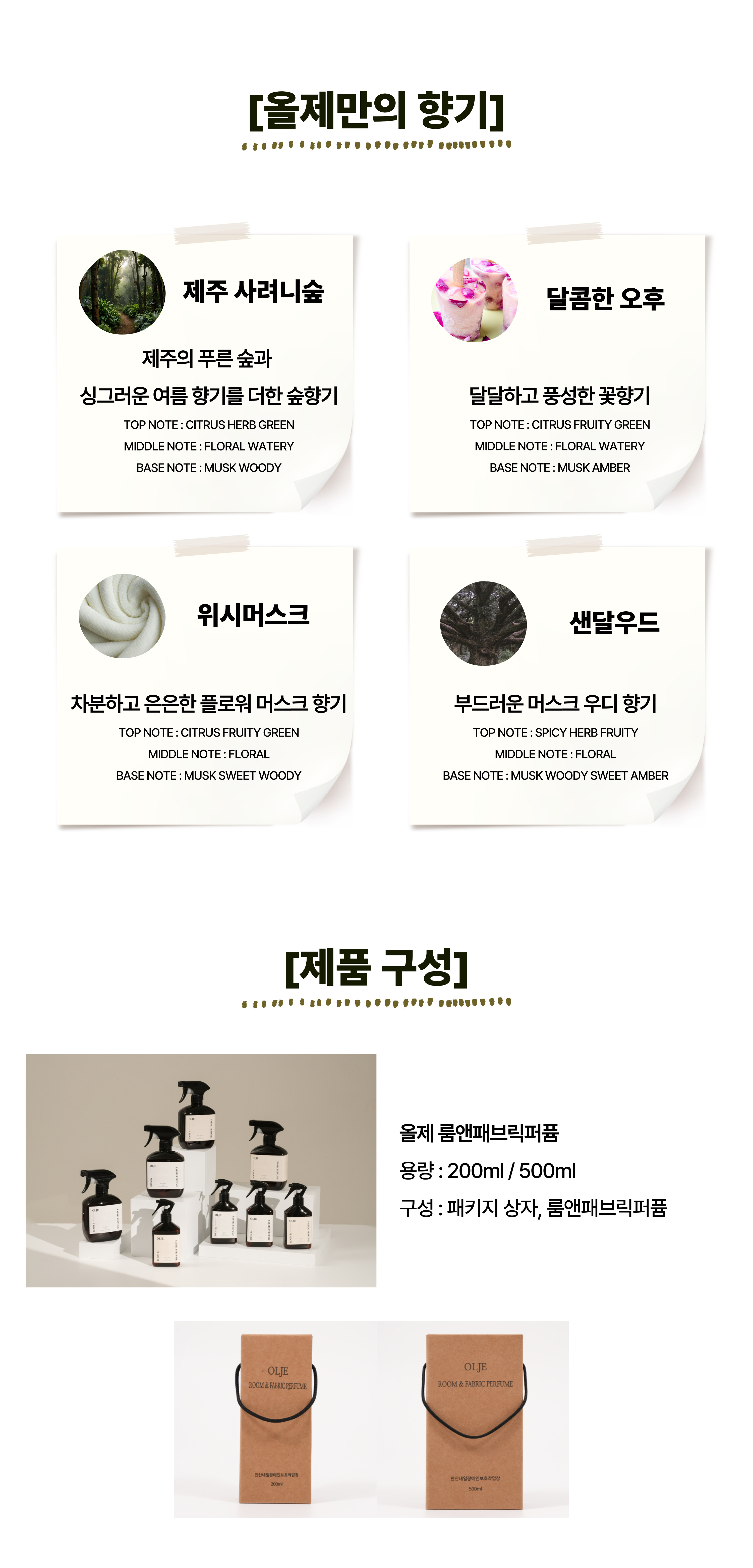 품목 및 제품명 품목 : 방향제, 탈취제 / 제품명 : 올제 샌달우드